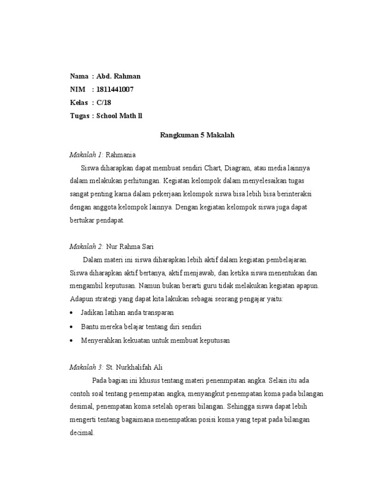 Kumpulan makalah materi sekolah dan contoh-contoh soal serta informasi-informasi lainnya. Pada dasarnya kesimpulan serta saran dalam pembuatan makalah akan menjadikan rangkuman singkat dalam isi pembahasan tema yang akan kita buat. Penjelasan mengenai contoh resume jurnal buku makalah materi pribadi lamaran kerja artikel dan film terbaru dan terlengkap yang baik dan benarResume adalah ringkasan atau rangkuman sebuah karya tulis yang panjang lalu dipersingkat dengan diambil bagian yang penting untuk disampaikan saja seperti bagian pokok dan mengisikan bagian pelengkap dan ilustrasinya.