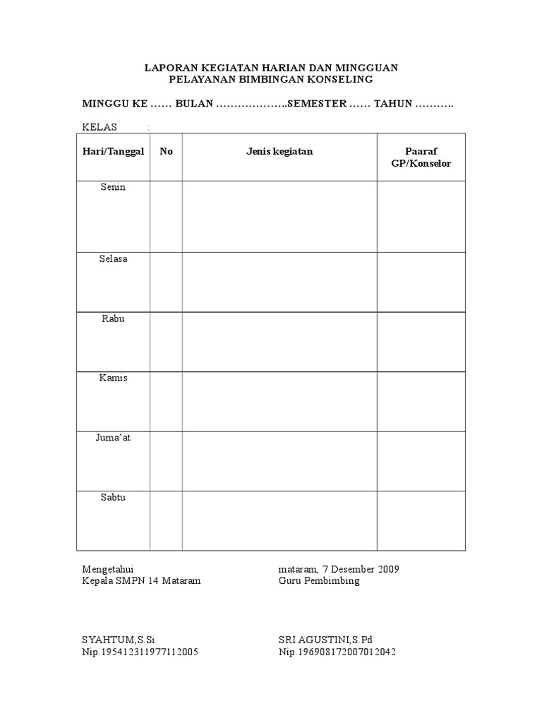 Laporan Kegiatan Harian Dan Mingguan