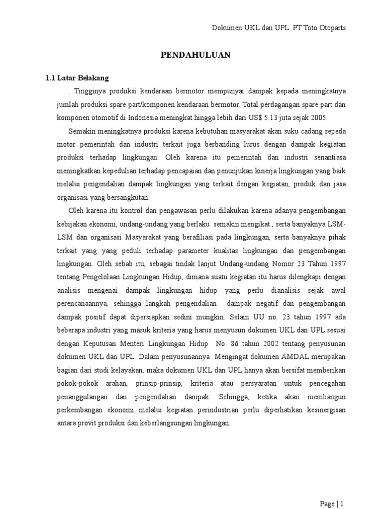 KUMPULAN CONTOH DOKUMEN LAPORAN UKL UPL. Contoh Laporan Ukl Upl Pdf 127. PDF seputar sistem OSS dan keterkaitannya dengan AMDAL dan UKL-UPL.