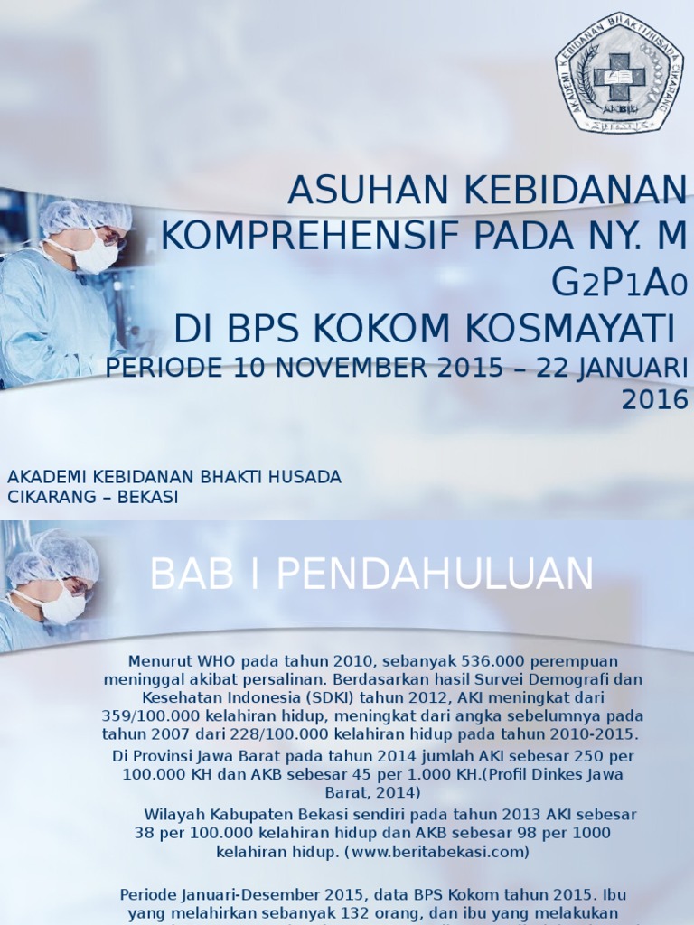 P37324215051 kementrian kesehatan republik indonesia politeknik kesehatan jakarta iii jurusan kebidanan program studi diii kebidanan tahun 2017. Jenis laporan yang digunakan melalui pendekatan studi kasus. Taman Sari Jakarta Barat dari tanggal 8 Sep-2 Nov 2014.