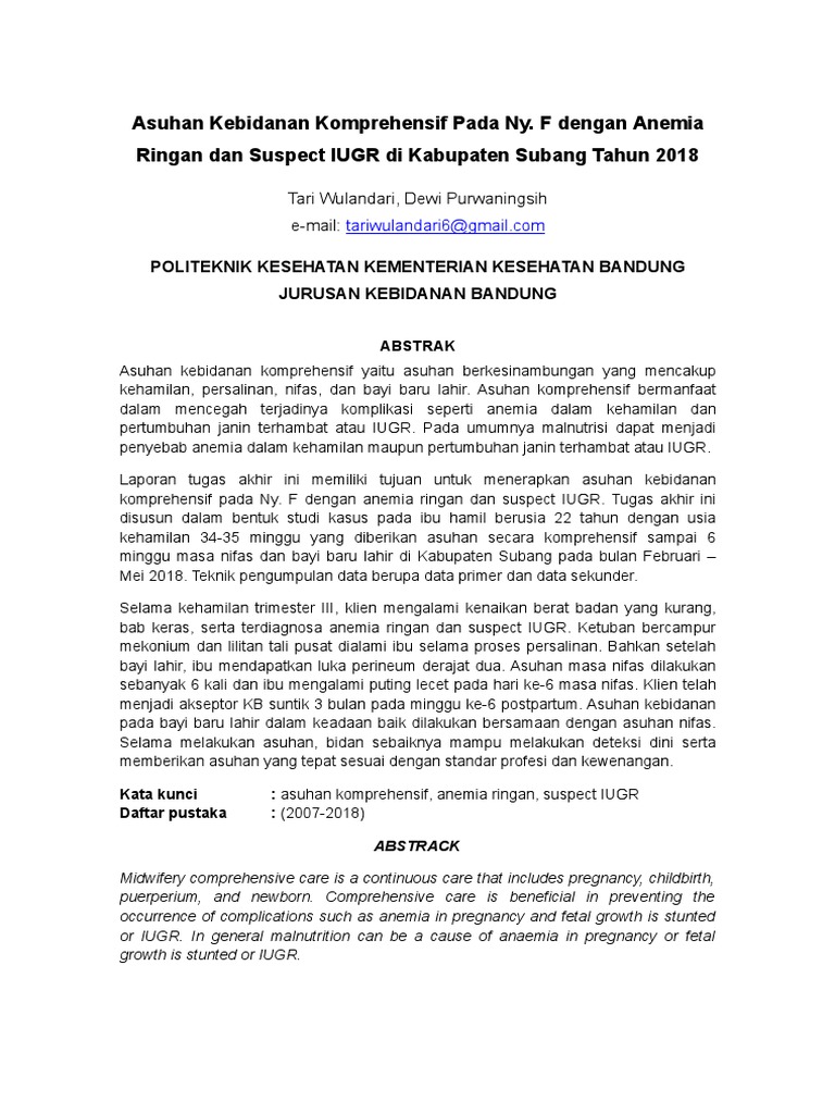 Medan johor kota madya medan tahun 2017 ix 113 halaman 10 lampiran 15 tabel ringkasan asuhan kebidanan. T dan Rumah Klien di Kelurahan Karanganyar Kabupaten Subang pada bulan Maret Juni 2016 dengan. Studi Kasus Kebidanan.