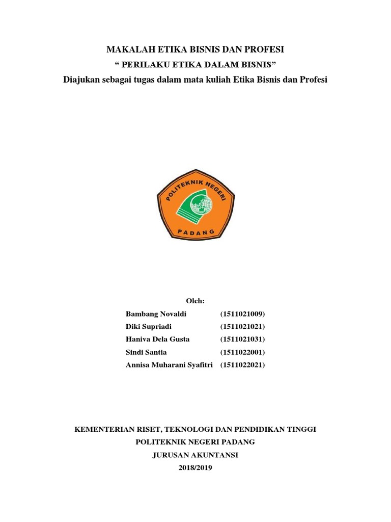 Doc Makalah Etika Profesi Bisnis Nur Asnita Eka Musrifah Academia Edu