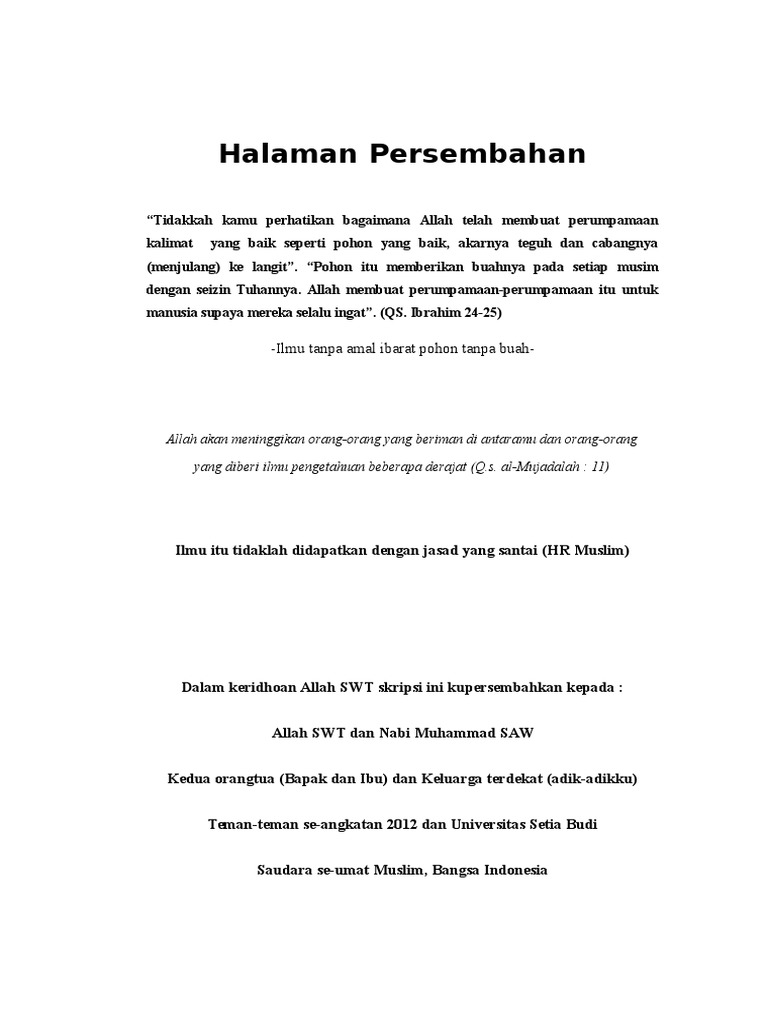 Dalam penulisan puisi tersebut ada beberapa hal yang harus dipertahankan dalam proses penyusunannya salah satu diantaranya adalah mengatur irama disetiap kata-kata yang menyusunnya. Download Contoh Kata Persembahan Dalam Skripsi PDF 2000 MB - Kumpulan Tips Soal Jurnal Skripsi Makalah. Derajat orang orang yang beriman diantaramu dan orang orang yang diberi ilmu beberapa derajat qs.