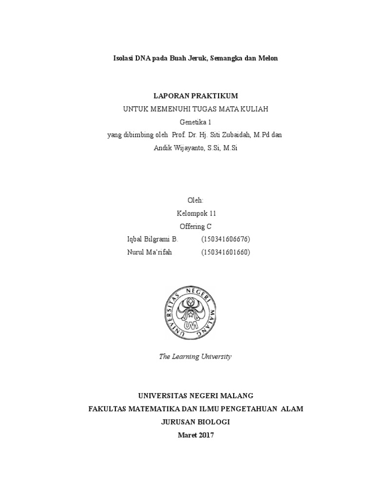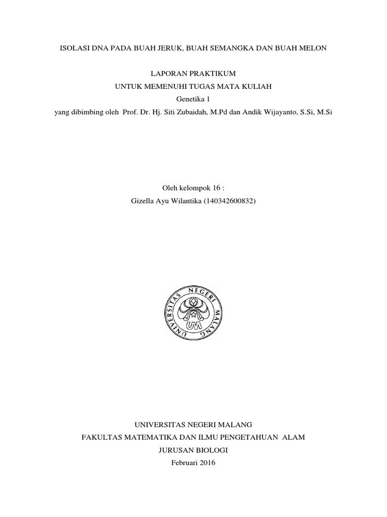 Berikut ini adalah contoh laporan praktikum biologi Isolasi DNA Tumbuhan sekali lagi ini cuman contoh jadi jangan di kopas mentah-mentah ya. Buah lain yang j uga mengandung likopen adalah buah tomat papaya dan jamb u biji Mappiratu 2013. PENUTUP 51 Kesimpulan Dalam praktikum tentang isolasi DNA kasar pada buah mangga ini dapat disimpulkan bahwa detergen cair memiliki kualitas paling baik dalam pembentukan DNA pada ekstrak buah.