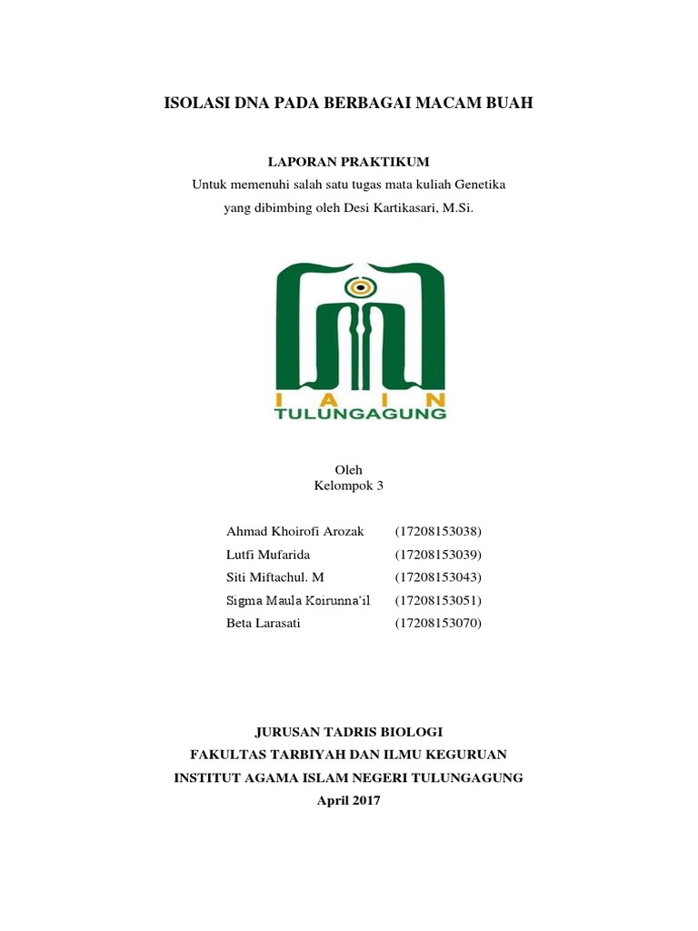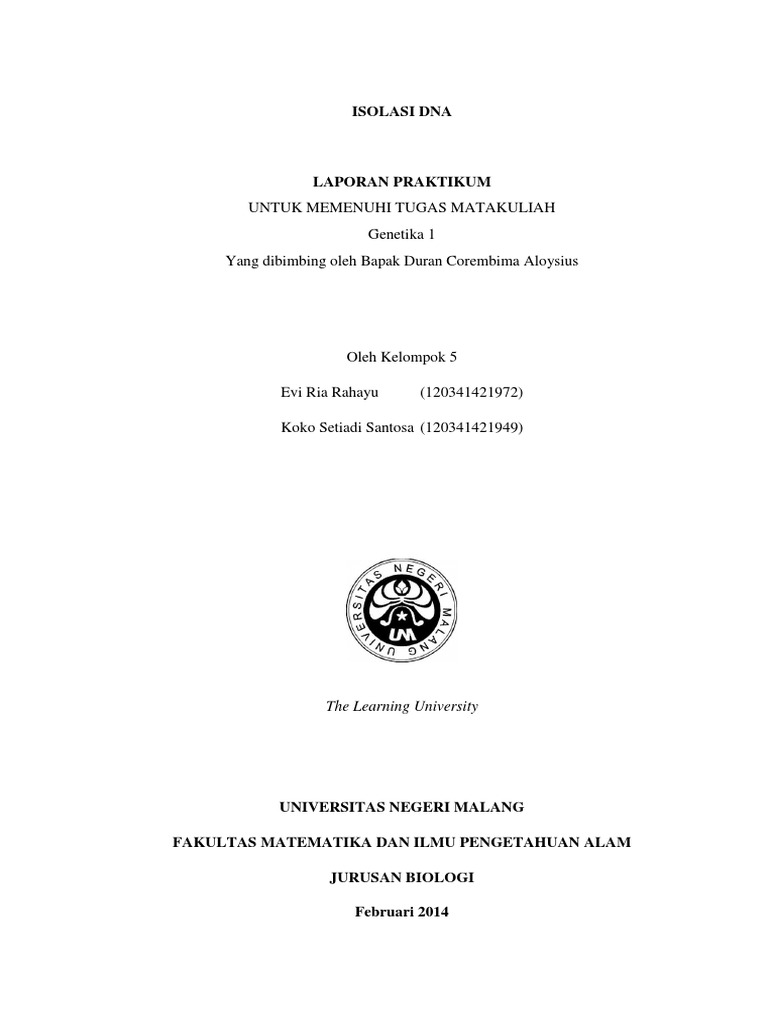Laporan Isolasi Sederhana Dna Pada Buah Pdf