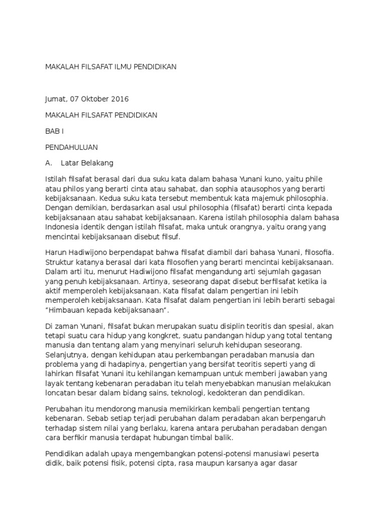 Makalah filsafat dan ilmu pendidikan. Batasan-batasan Pengkajian Ilmu Pengetahuan. Dalam proses pembuatan makalah ini kami harap dapat membantu pembaca untuk mengetahui bagaimana hakikat sumber dan implikasi ilmu pengetahuan terhadap filsafat pendidikan Islam. Masalah-masalah filsafat ilmu pendidikan adalah.